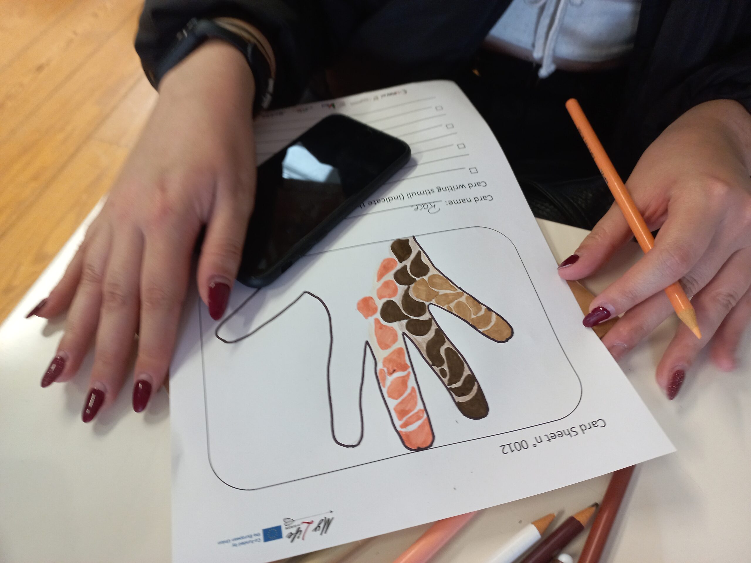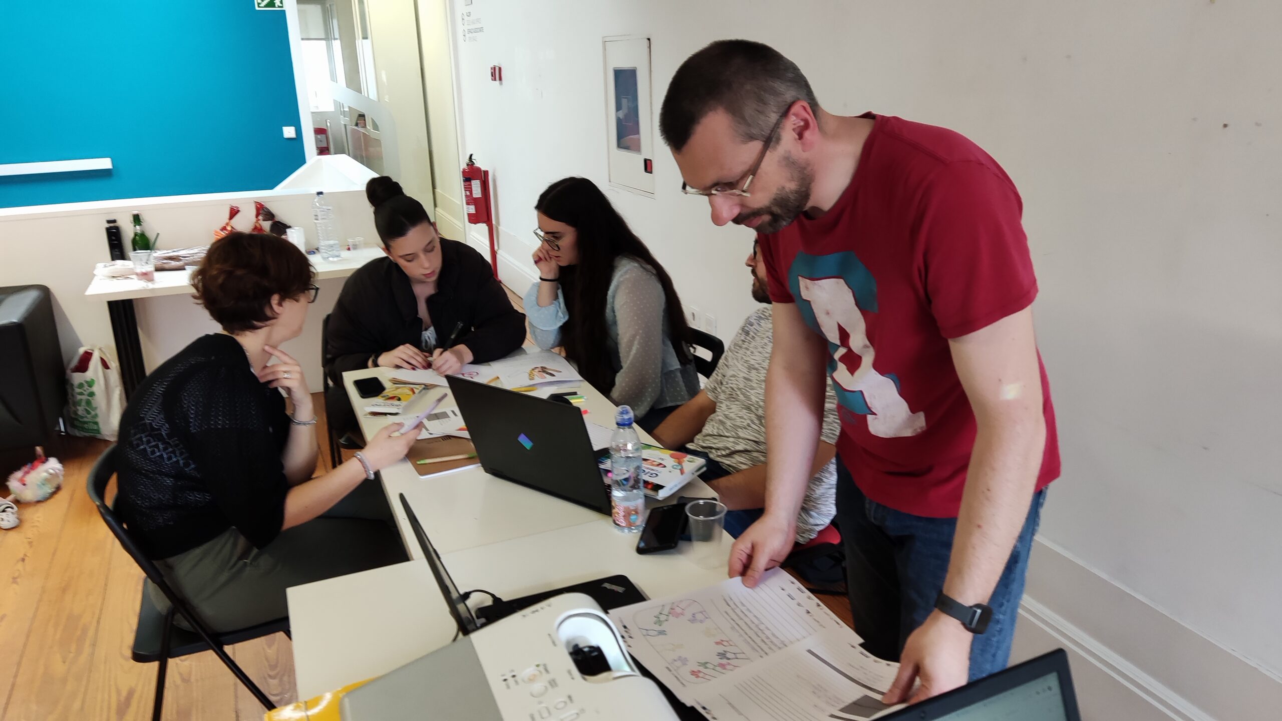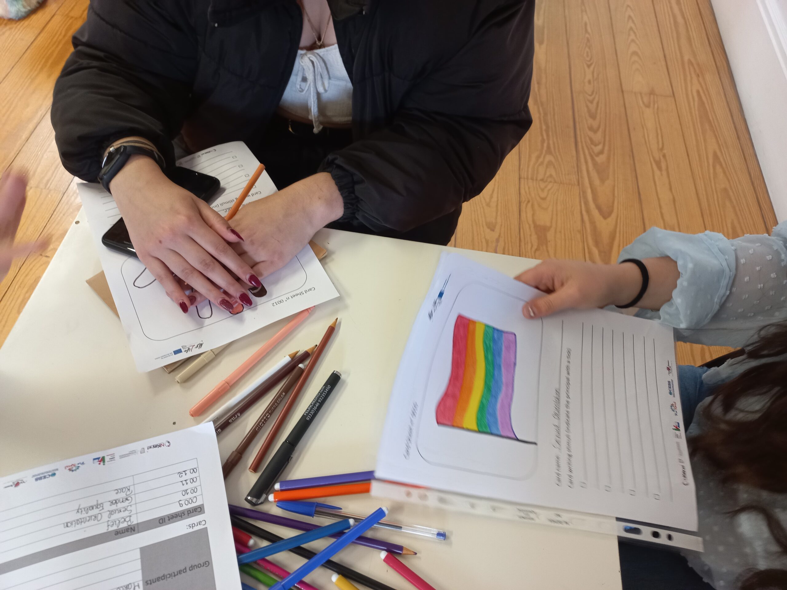 Successivamente, i partecipanti si sono divisi in tre gruppi, prendendo parte ad un workshop creativo. Sulla base di quanto appreso, ogni gruppo ha sviluppato 4 carte, scegliendo come tema ispiratore due dei sei valori fondanti dell’identità europea: dignità umana, libertà, democrazia, uguaglianza, stato di diritto e diritti umani. In questa fase, Sara Panicci di Nkey e Grazia Chiarini e Sergio Brunetti della LUA hanno supervisionato il lavoro dei vari gruppi, rispondendo a dubbi e questioni sorte durante lo svolgimento dell’attività.