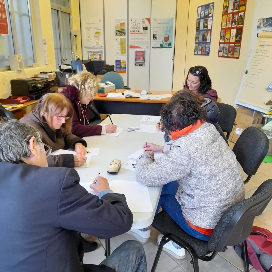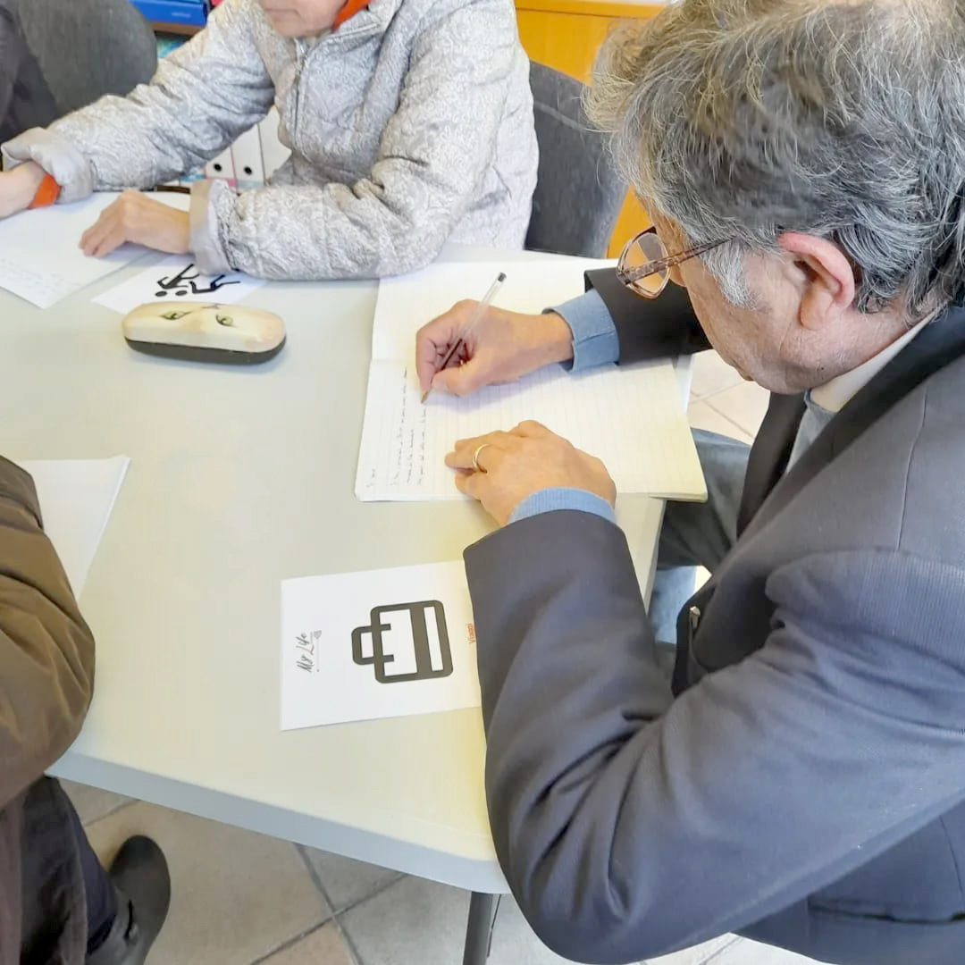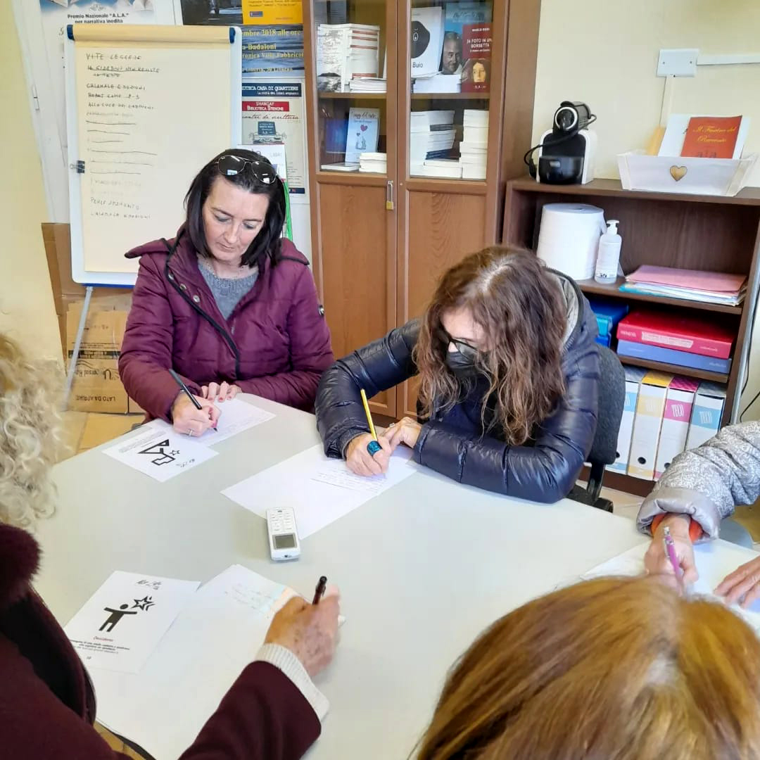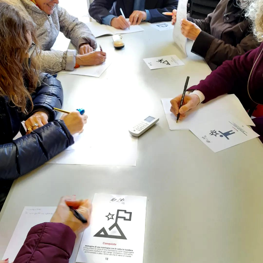 They have been friends since then, and have also started collaborating in the field of writing. Together, albeit their respective uniqueness, they have organized autobiographical-writing meetings both in Santa Croce sull’Arno’s library and in Livorno’s ALA headquarters which, during the time of the pandemic, have turned into weekly online meetings. In this journey, they were able to form a very motivated and active group, although initially online. Thus, on Friday, April 8th 2022 the writers from Livorno, coordinated by Prof. Marco Rodi, founder and past president of ALA, gathered, in person, in the first meeting to experiment with the paper version of the “My Life” game. A brief opinion survey has concluded that the participants were very intrigued by the “My Life” game, both because of the cards’ black and white design and because of the words which, together with the pictures, have been chosen as narrative stimuli. In said occasion they used another version of the printed game, as a demonstration of its great versatility, being that of distributing the cards randomly, without following a pre-established order. This way, each player had the possibility to write freely about themselves based on the stimulus that fate assigned them. The online game session is expected to be held soon.
